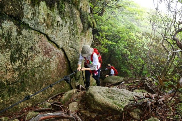 登山口は標高1000mにあるヤクスギランド、名前からは思いもしない風情ある素晴らしい森です。さらに奥へと進み「天文の森」をこえると急な登りとなりますが、深い巨木の森がそんな疲れを忘れさせてくれます。山頂まで登りきると何万年も立ち続ける「天柱石」に、その凄さとそこからの絶景はまさに奇跡です。